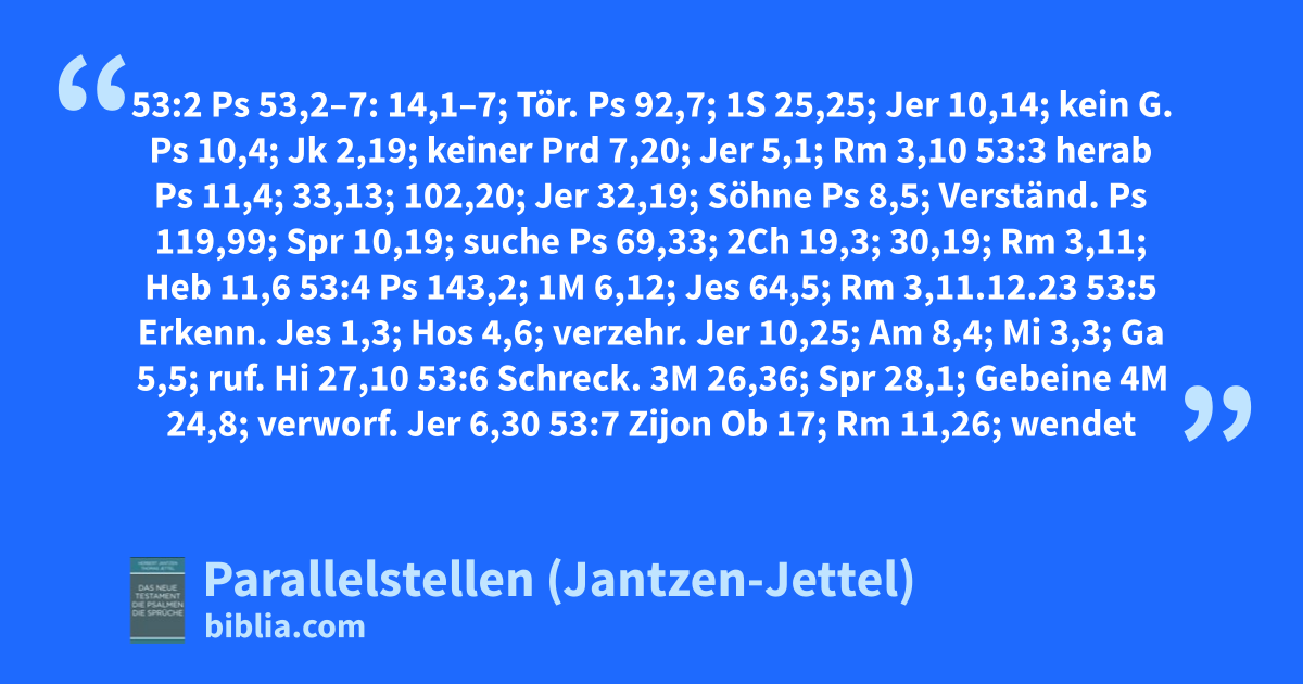 53:2 Ps 53,2–7: 14,1–7; Tör. Ps 92,7; 1S 25,25; Jer 10,14; kein G. Ps 10,4; Jk 2,19; keiner Prd 7,20; Jer 5,1; Rm 3,10