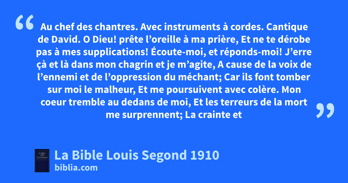 About La Bible Louis Segond 1910Publiée à l'origine en 1888 par Louis Segond par subvention de la Compagnie des pasteurs de Genève, la version de 1910 en constitue la première révision majeure après sa mort. Elle demeure l'une des Bibles françaises les plus utilisées de nos jours. |