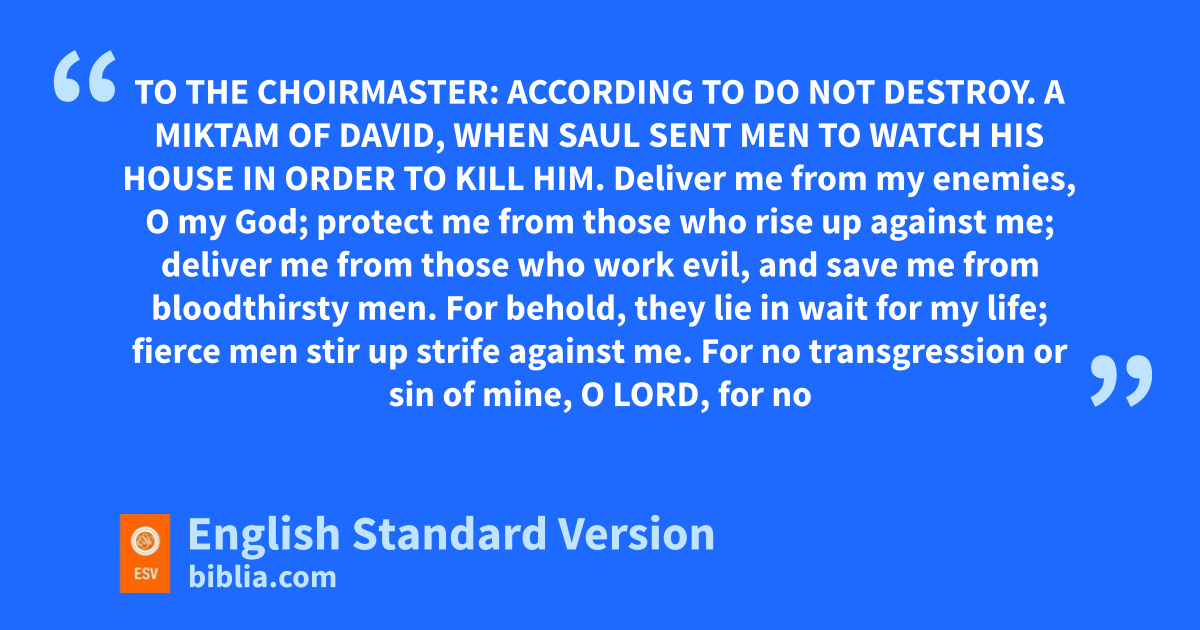 59 To the choirmaster: according to xDo Not Destroy. A yMiktam1 of David, zwhen Saul sent men to watch his house in order to kill him.