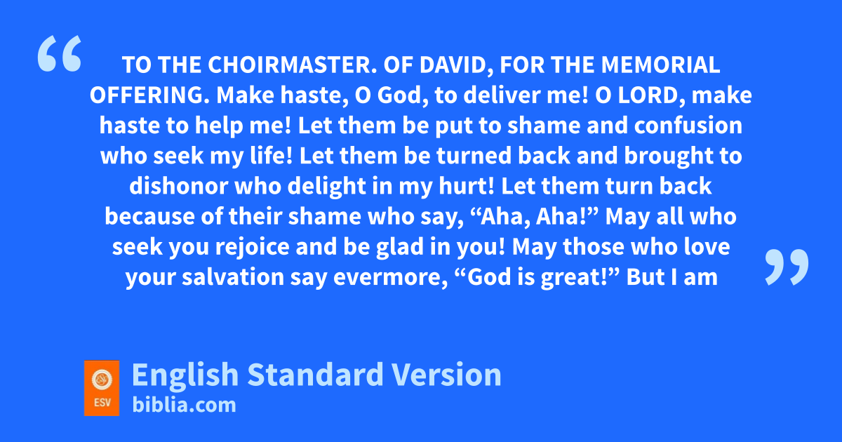 70 To the choirmaster. Of David, ffor the memorial offering.