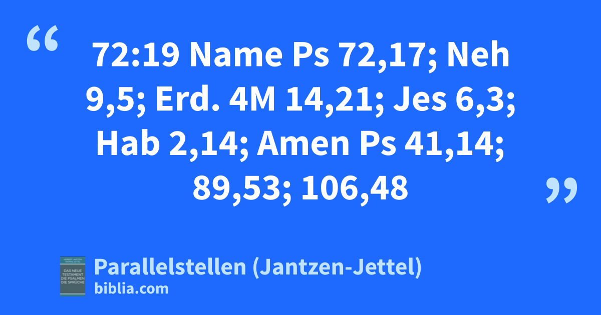72:19 Name Ps 72,17; Neh 9,5; Erd. 4M 14,21; Jes 6,3; Hab 2,14; Amen Ps 41,14; 89,53; 106,48