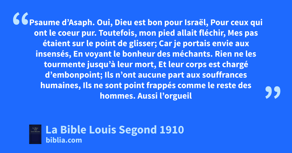 About La Bible Louis Segond 1910Publiée à l'origine en 1888 par Louis Segond par subvention de la Compagnie des pasteurs de Genève, la version de 1910 en constitue la première révision majeure après sa mort. Elle demeure l'une des Bibles françaises les plus utilisées de nos jours. |
