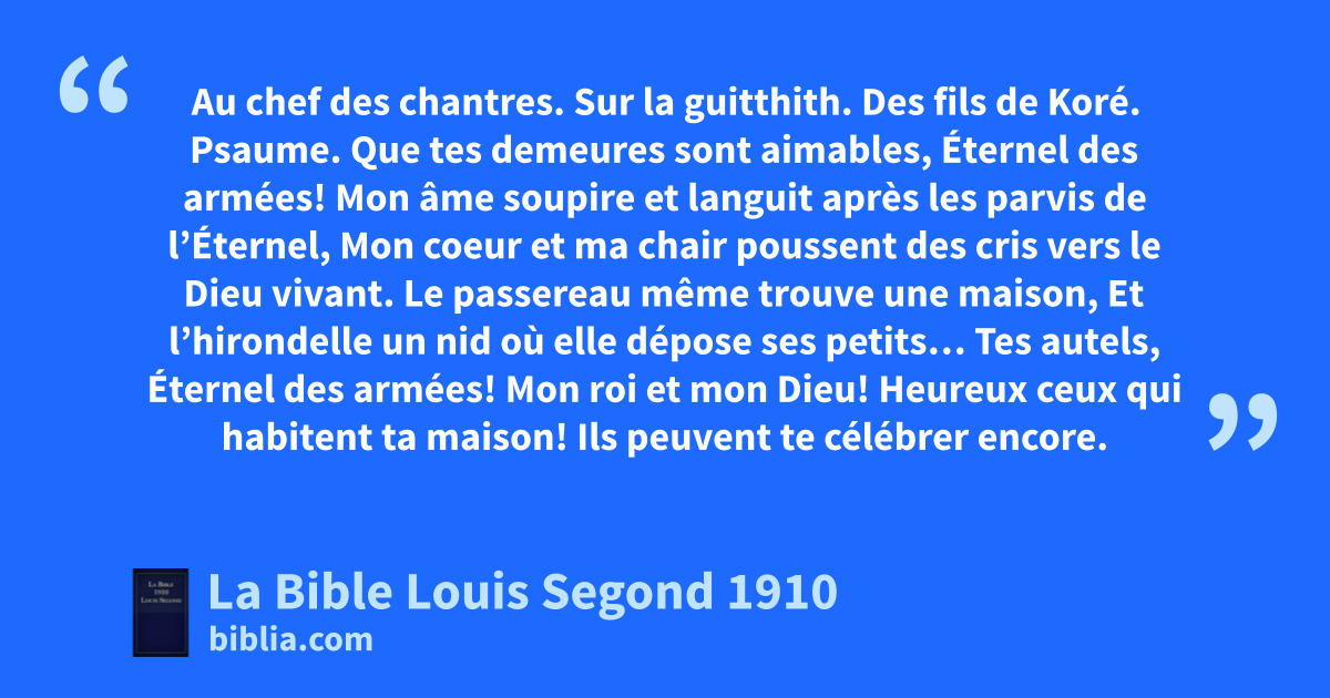 1Au chef des chantres. Sur la guitthith. Des fils de Koré. Psaume.