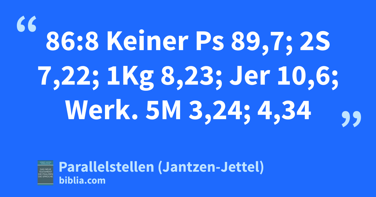 86:5 gut Ps 86,15*; 25,8*; 100,5*; 145,8.9; Mk 10,18 Vergeb. Ps 103,3; 130,4; Gnade Ps 86,13.15*; anruf. Ps 145,8; Jer 33,3; Rm 10,12