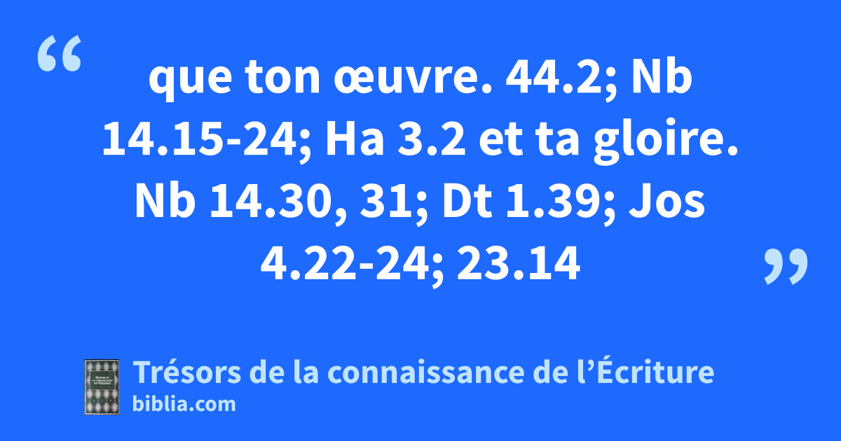 que ton œuvre. 44.2; Nb 14.15-24; Ha 3.2 et ta gloire. Nb 14.30, 31; Dt 1.39; Jos 4.22-24; 23.14