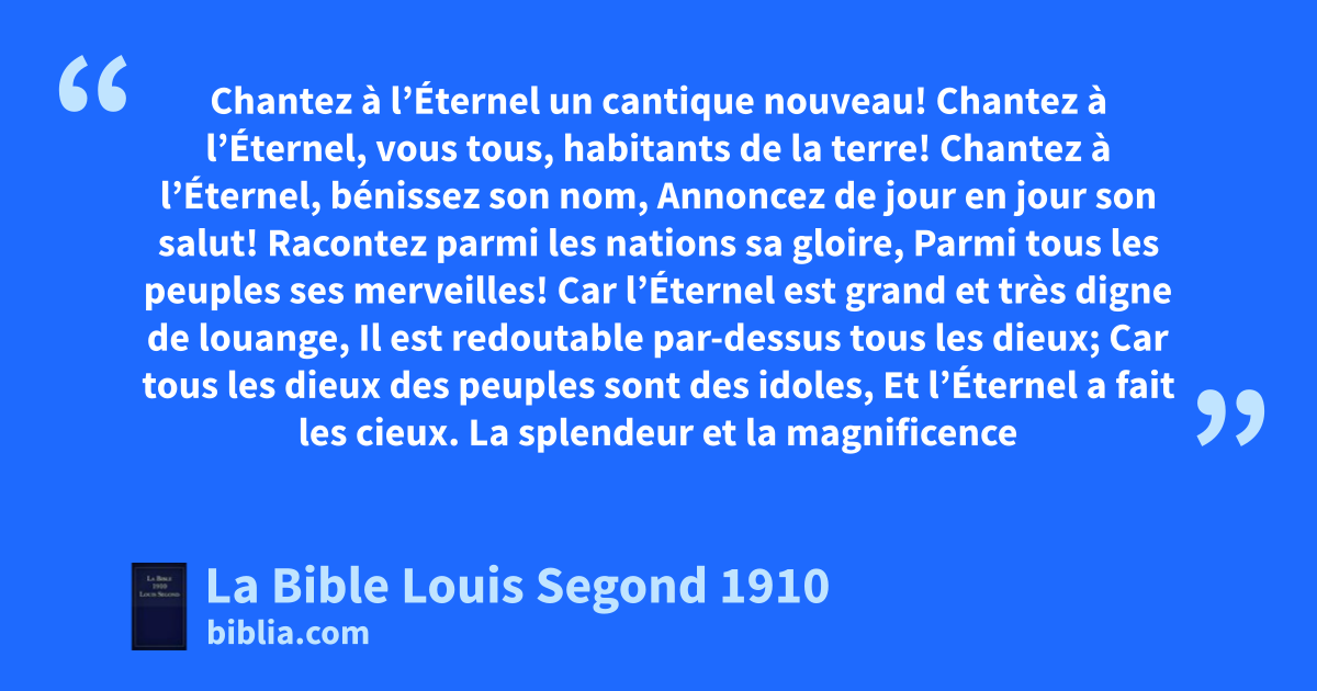Chantez à l’Éternel, vous tous, habitants de la terre!