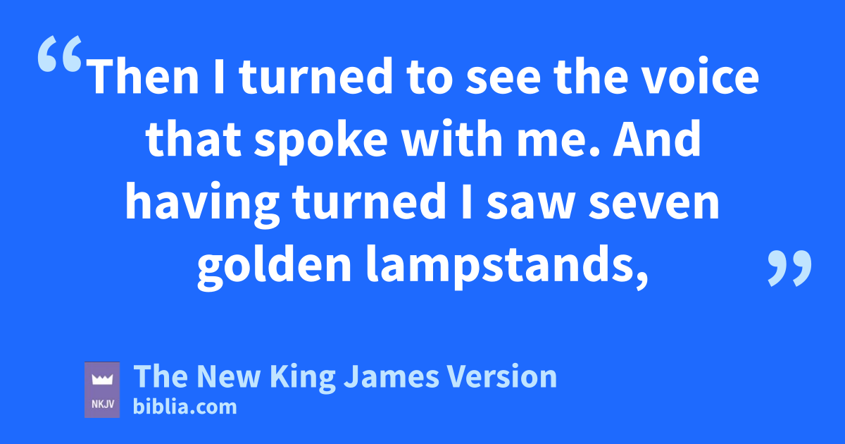 12 Then I turned to see the voice that spoke with me. And having turned bI saw seven golden lampstands, 13 cand in the midst of the seven lampstands dOne like the Son of Man, eclothed with a garment down to the feet and fgirded about the chest with a golden band. 14 His head and ghair were white like wool, as white as snow, and hHis eyes like a flame of fire; 15 iHis feet were like fine brass, as if refined in a furnace, and jHis voice as the sound of many waters; 16 kHe had in His right hand seven stars, lout of His mouth went a sharp two-edged sword, mand His countenance was like the sun shining in its strength. 17 And nwhen I saw Him, I fell at His feet as dead. But oHe laid His right hand on me, saying 9to me, “Do not be afraid; pI am the First and the Last. 18 qI am He who lives, and was dead, and behold, rI am alive forevermore. Amen. And sI have the keys of 1Hades and of Death. 19 2Write the things which you have tseen, uand the things which are, vand the things which will take place after this. 20 The 3mystery of the seven stars which you saw in My right hand, and the seven golden lampstands: The seven stars are wthe 4angels of the seven churches, and xthe seven lampstands 5which you saw are the seven churches.