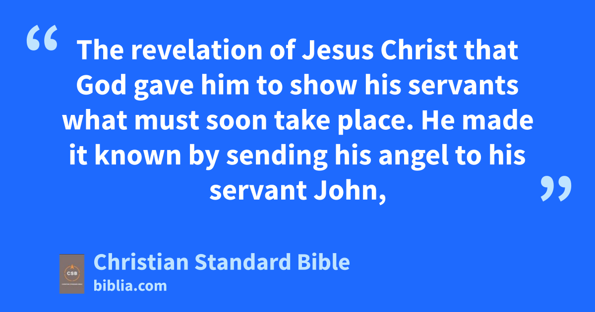 1 The revelation ofA Jesus Christ that God gave him to show his servantsa what must soon take place.b He made it known by sending his angelc to his servant John,d 2 who testified to the word of God and to the testimonyB of Jesus Christ,e whatever he saw.C 3 Blessed is the one who reads aloud the words of this prophecy,f and blessed are those who hear the words of this prophecy and keepD what is written in it, because the time is near.