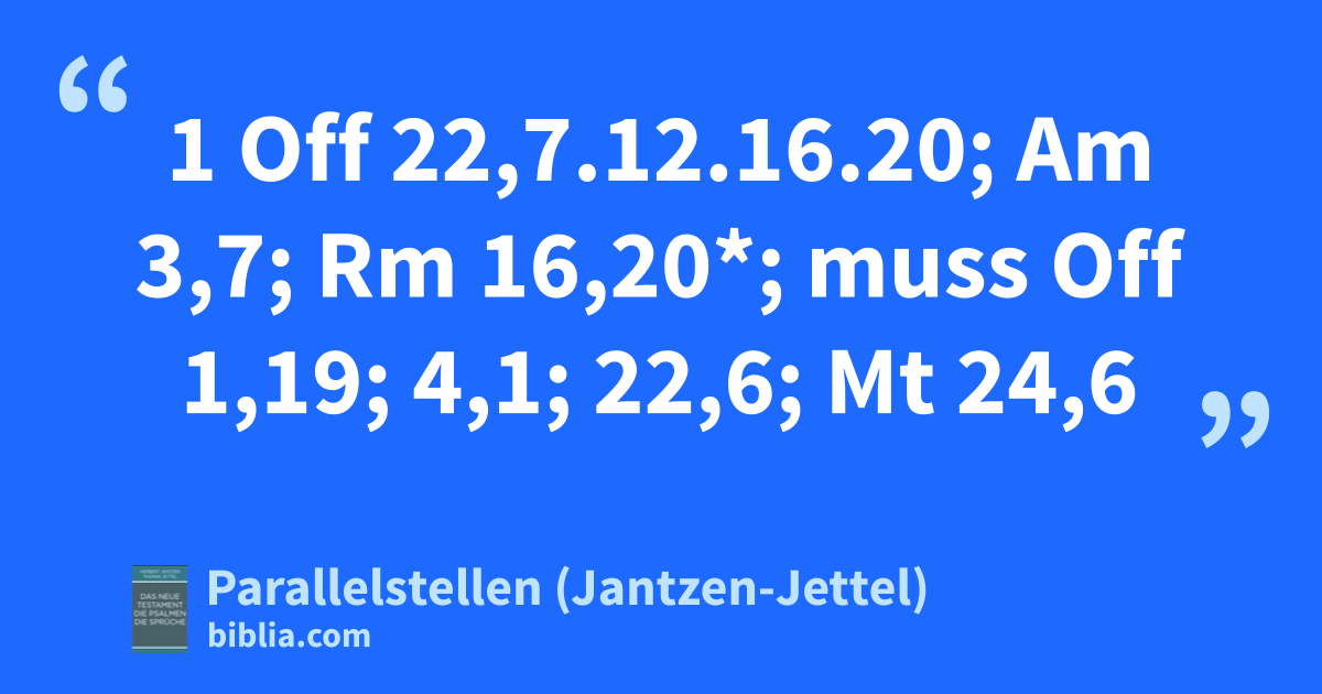 1 Off 22,7.12.16.20; Am 3,7; Rm 16,20*; muss Off 1,19; 4,1; 22,6; Mt 24,6