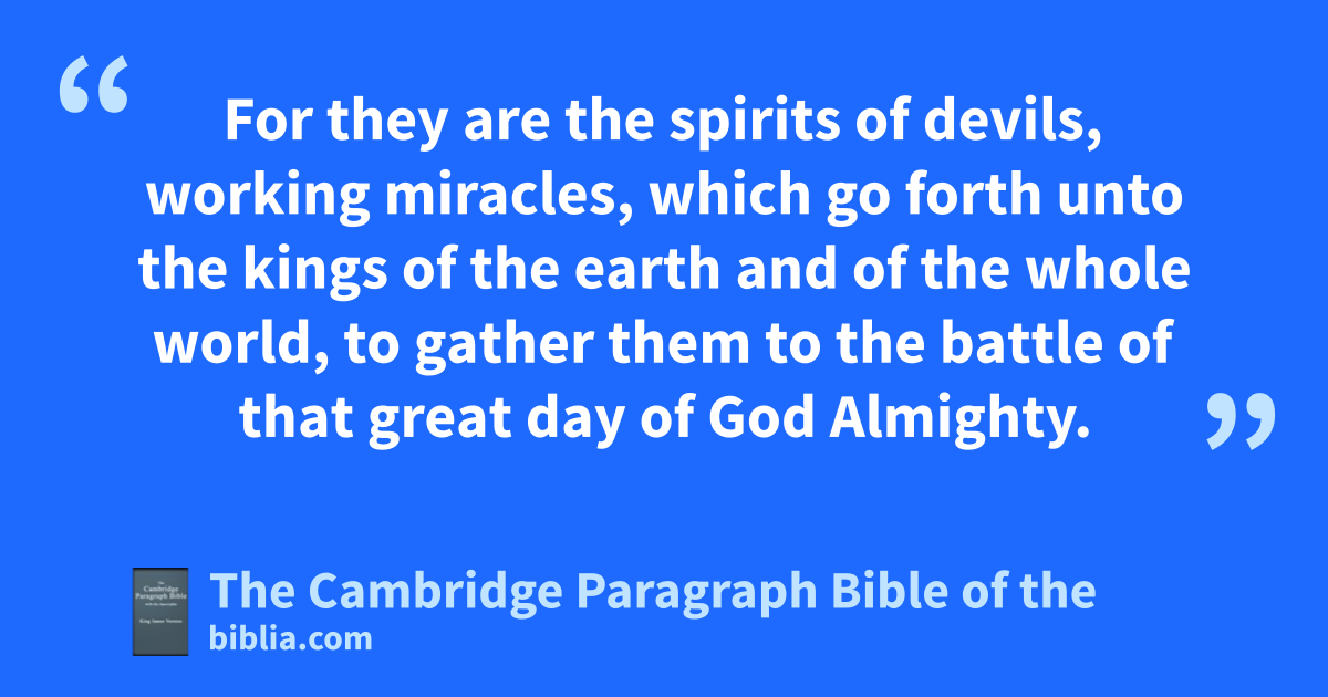 12 And the sixth angel poured out his vial upon jthe great river Euphrates; and kthe water thereof was dried up, that lthe way of the kings of the east might be prepared. 13 And I saw three munclean spirits like nfrogs come out of the mouth of othe dragon, and out of the mouth of pthe beast, and out of the mouth of qsthe false prophet. 14 For they are rthe spirits of devils, stworking miracles, which go forth unto the kings of the earth and of uthe whole world, vto gather them to the battle of wthat great day of God xAlmighty. 15 Behold, I come yas a thief. zBlessed is he that zwatcheth, and akeepeth his garments, blest he walk naked, and bcthey see dhis shame. 16 And ehe gathered them together into a place called fin the Hebrew tongue gArmageddon.