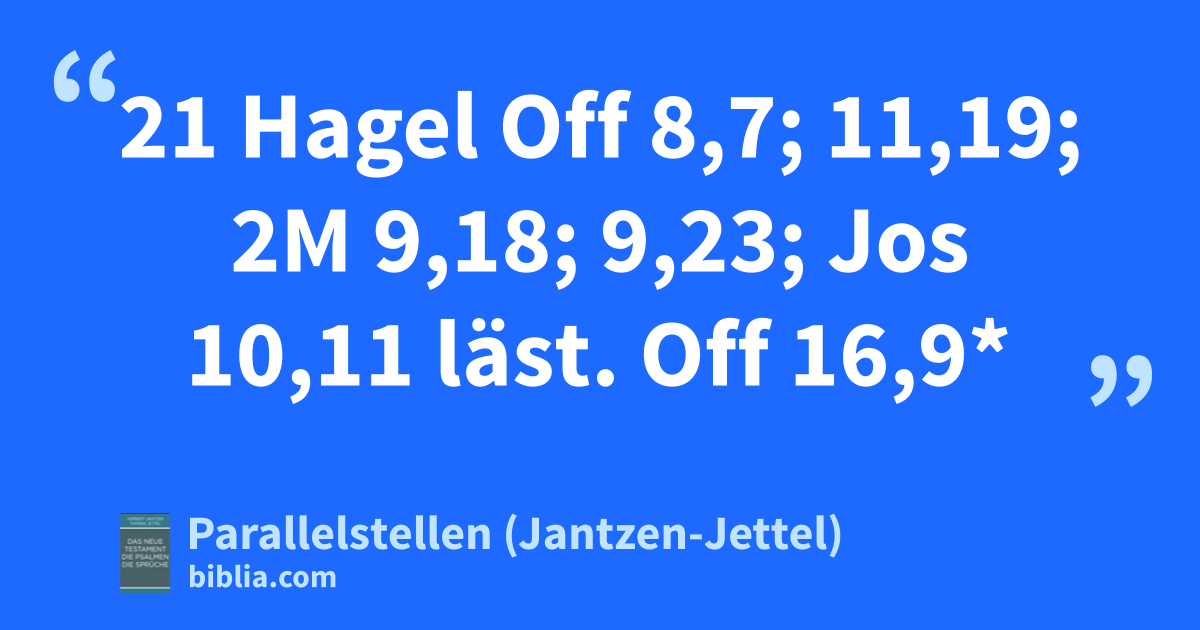 21 Hagel Off 8,7; 11,19; 2M 9,18; 9,23; Jos 10,11 läst. Off 16,9*