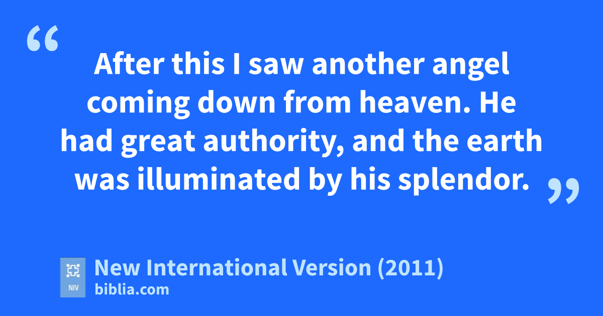 18 After this I saw another angelm coming down from heaven.n He had great authority, and the earth was illuminated by his splendor.o 2 With a mighty voice he shouted: