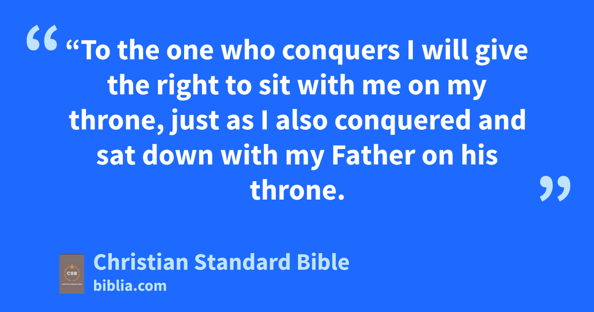 21 “To the one who conquers I will give the right to sit with me on my throne,ah just as I also conquered and sat down with my Father on his throne.
