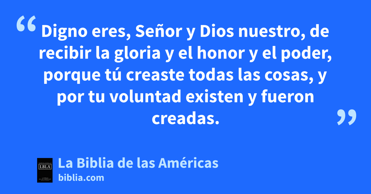11 Digno eres, Señor y Dios nuestro, de recibir la gloria y el honor y el podera, porque tú creaste todas las cosasb, y por tu voluntad existen1 y fueron creadas.
