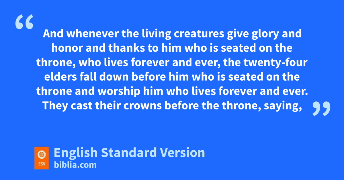 9 And whenever the living creatures give glory and honor and thanks to him who is seated on the throne, bwho lives forever and ever, 10 the twenty-four elders cfall down before him who is seated on the throne and worship him who lives forever and ever. They cast dtheir crowns before the throne, saying,