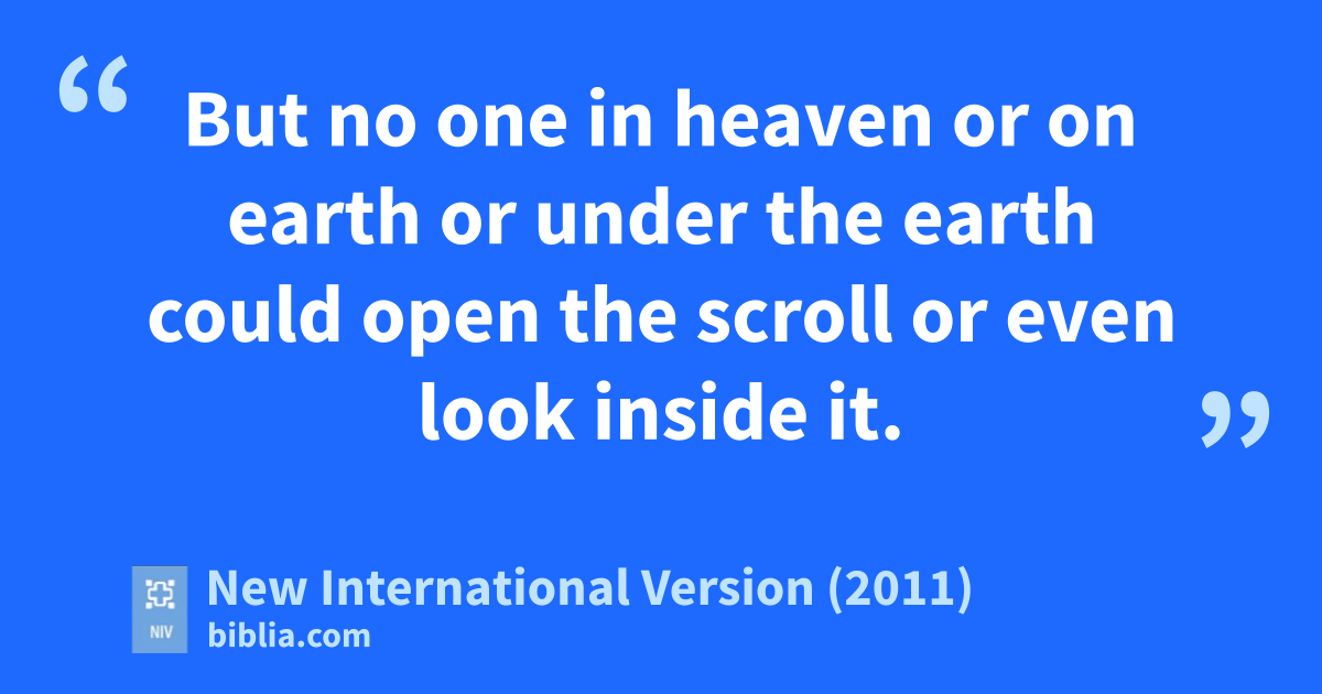 5 Then I saw in the right hand of him who sat on the throneo a scroll with writing on both sidesp and sealedq with seven seals. 2 And I saw a mighty angelr proclaiming in a loud voice, “Who is worthy to break the seals and open the scroll?” 3 But no one in heaven or on earth or under the earth could open the scroll or even look inside it. 4 I wept and wept because no one was found who was worthy to open the scroll or look inside. 5 Then one of the elders said to me, “Do not weep! See, the Lions of the tribe of Judah,t the Root of David,u has triumphed. He is able to open the scroll and its seven seals.”