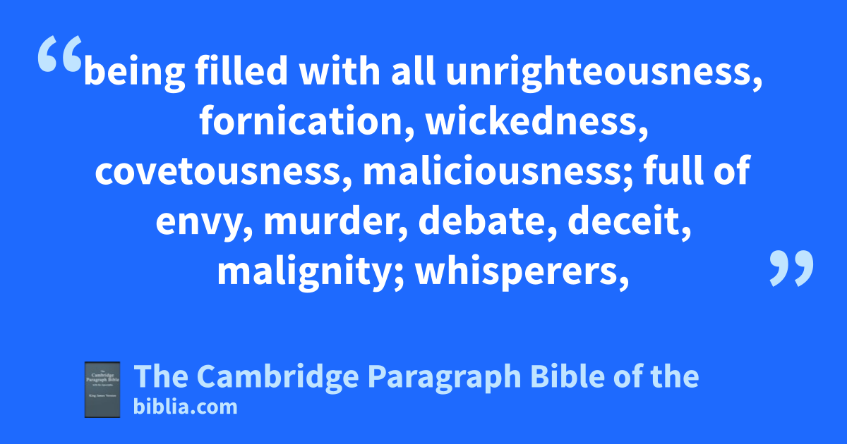 26 For this cause xGod gave them up unto cvile affections: for even their women did change the natural use into that which is against nature: 27 and likewise also dthe men, leaving the natural use of the woman, burned in their elust one towards another; men with men working that which is unseemly, and receiving in themselves that recompence of their error which was meet. 28 And even as they did not flike * to retain God in their knowledge, xGod gave them over to * a reprobate mind, to do those things gwhich are not convenient; 29 being filled with all unrighteousness, fornication, hiwickedness, hcovetousness, ijkmaliciousness; full of kenvy, murder, debate, deceit, lmalignity; mwhisperers, 30 mbackbiters, nhaters of God, odespiteful, hpproud, pboasters, qinventors of evil things, pdisobedient to parents, 31 rwithout understanding, covenant-breakers, * swithout natural affection, simplacable, unmerciful: 32 who knowing tthe judgment of God, that they which commit such things uare worthy of death, not only do the same, but * xhave pleasure in them that do them.