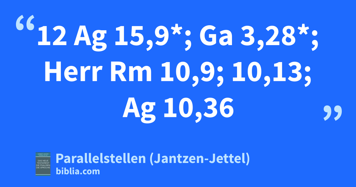 12 Ag 15,9*; Ga 3,28*; Herr Rm 10,9; 10,13; Ag 10,36