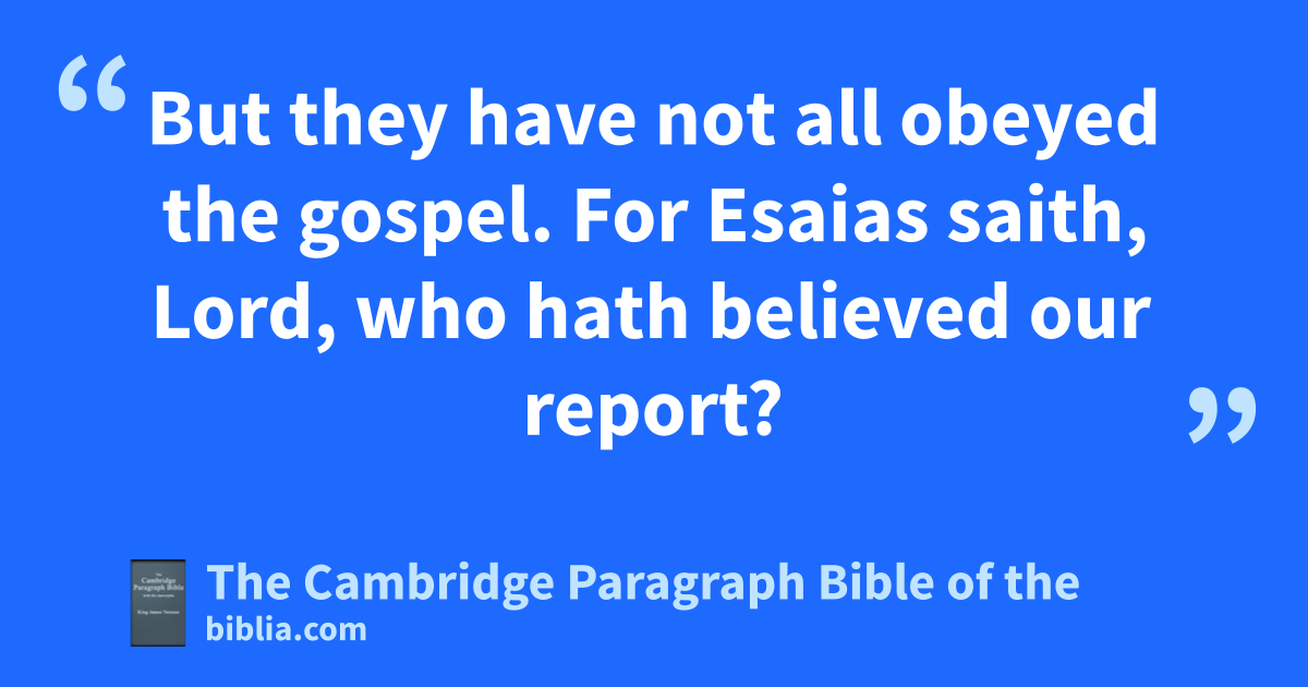 X. Brethren, amy heart’s desire and prayer to God for Israel is, that they might be saved. 2 For I bear them record bthat they have a zeal of God, but cnot according to knowledge. 3 For they being ignorant of dGod’s righteousness, and going about to establish dtheir own righteousness, have not submitted themselves unto the righteousness of God. 4 For eChrist is the end of the law for righteousness to every one that believeth. 5 For Moses describeth the righteousness which is of the law, That fthe man which doeth those things shall live by them. 6 But dthe righteousness which is of faith speaketh on this wise, gSay not in thine heart, Who shall ascend into heaven? (that is, hto bring Christ down from above:) 7 or, Who shall descend into the deep? (that is, to bring up Christ again from the dead.) 8 But what saith it? iThe word is nigh thee, even in thy mouth, and in thy heart: that is, the word of faith, which we preach; 9 that if thou shalt kconfess with thy mouth the Lord Jesus, and shalt lbelieve in thine heart that God hath raised him from the dead, thou shalt be saved. 10 For with the heart man believeth unto righteousness; and with the mouth confession is made unto salvation. 11 For llthe scripture saith, mWhosoever believeth on him shall not be ashamed. 12 For nthere is no difference between the Jew and the Greek: for othe same Lord over all is prich unto all that call upon him. 13 For qwhosoever shall rcall upon the name of the Lord shall be saved. 14 How then shall they call on him in whom they have not believed? and how shall they believe in him of whom they have not heard? and how shall they hear swithout a preacher? 15 And how shall they preach, except tthey be sent? as it is written, uHow beautiful are the feet of them that preach the gospel of peace, and bring glad tidings of good things! 16 But xthey have not all obeyed the gospel. For Esaias saith, Lord, ywho hath believed * our * zreport? 17 So then faith cometh by zhearing, and zhearing by the word of God. 18 But I say, Have they not heard? aYes verily, btheir sound went into all the earth, and their words unto the ends of the world. 19 But I say, Did not Israel know? First Moses saith, cI will provoke you to jealousy by them that are no people, and by a dfoolish nation I will anger you. 20 But Esaias is very bold, and saith, eI was found of them that sought me not; I was made manifest unto them that asked not after me. 21 But to Israel he saith, fAll day long have I stretched forth my hands unto a disobedient and gainsaying people.