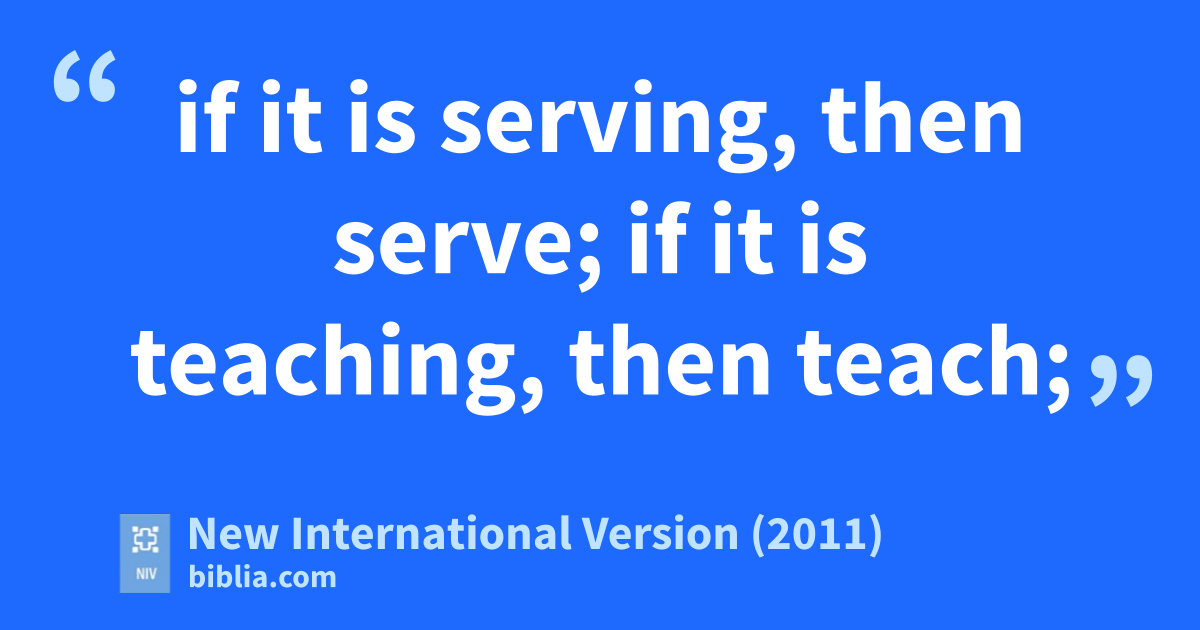 3 For by the grace given mem I say to every one of you: Do not think of yourself more highly than you ought, but rather think of yourself with sober judgment, in accordance with the faith God has distributed to each of you. 4 For just as each of us has one body with many members, and these members do not all have the same function,n 5 so in Christ we, though many, form one body,o and each member belongs to all the others. 6 We have different gifts,p according to the grace given to each of us. If your gift is prophesying,q then prophesy in accordance with youra faith;r 7 if it is serving, then serve; if it is teaching, then teach;s 8 if it is to encourage, then give encouragement;t if it is giving, then give generously;u if it is to lead,b do it diligently; if it is to show mercy, do it cheerfully.