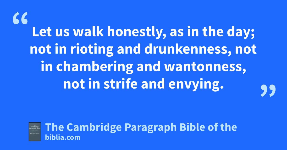 11 And that, knowing sthe time, sthat now it is high time tto awake out of sleep: for now is our salvation nearer than when uwe believed. 12 The night is far spent, vthe day is at hand: let us therefore cast off wthe works of darkness, and xlet us put on ythe armour of light. 13 zLet us walk * honestly, as in the day; not in arioting and bdrunkenness, not in cchambering and dwantonness, not in estrife and envying. 14 But fput ye on the Lord Jesus Christ, and make not provision for the flesh, gto fulfil the lusts thereof.