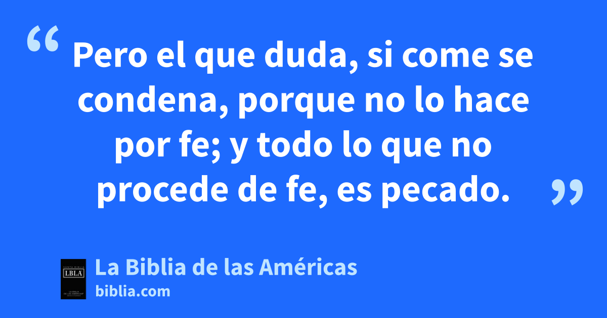 23 Pero el que dudaa, si come se condena, porque no lo hace por fe; y todo lo que no procede de fe, es pecado.