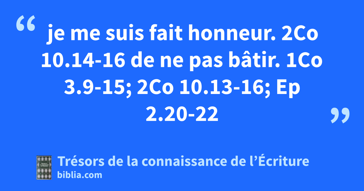 je me suis fait honneur. 2Co 10.14-16 de ne pas bâtir. 1Co 3.9-15; 2Co 10.13-16; Ep 2.20-22