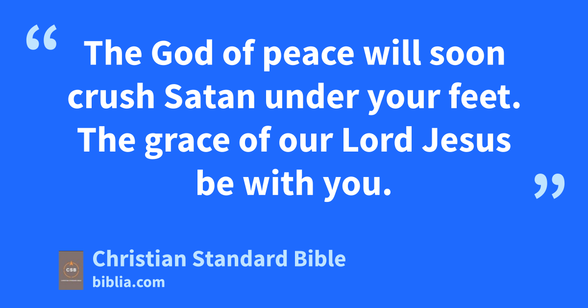 19 The report of your obedience has reached everyone.l Therefore I rejoice over you, but I want you to be wise about what is good, and yet innocent about what is evil.m 20 The God of peacen will soon crush Satano under your feet. The grace of our Lord Jesus be with you.p