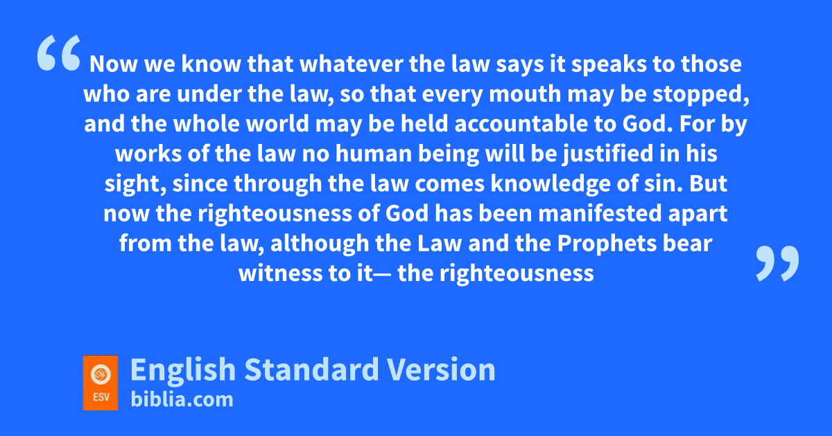 19 Now we know that whatever vthe law says it speaks to those who are under the law, wso that every mouth may be stopped, and xthe whole world may be held accountable to God. 20 For yby works of the law no human being3 will be justified in his sight, since zthrough the law comes knowledge of sin.