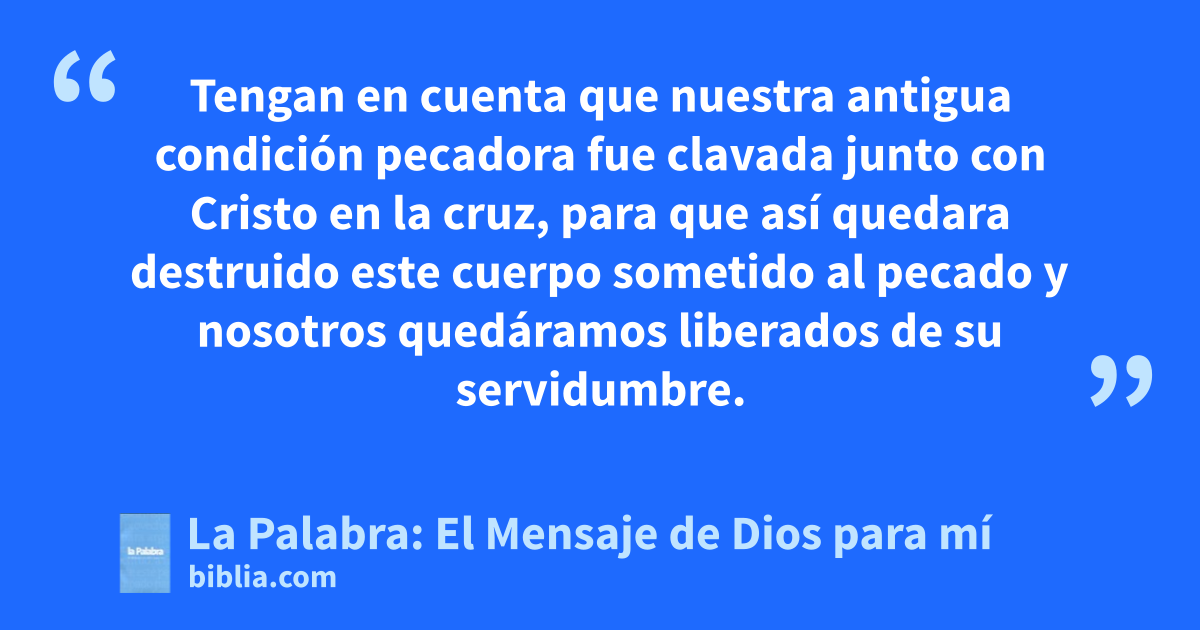 20 Cuando ustedes eran esclavos del pecado, no se consideraban obligados a practicar el bien. 21 ¿Y cuál fue el resultado? Vergüenza les da a ustedes decirlo, porque todo desembocó en la muerte. 22 Pero ahora han sido liberados del pecado, son siervos de Dios, han sido consagrados a él y tienen como meta la vida eterna. 23 Porque el salario del pecado es la muerte, mientras que el don que Dios nos hace es la vida eterna por medio de Cristo Jesús, Señor nuestro.