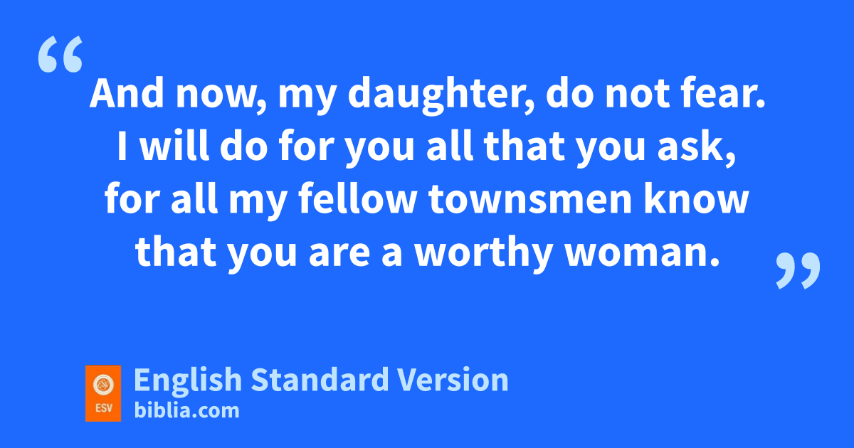 6 So she went down to the threshing floor and did just as her mother-in-law had commanded her. 7 And when Boaz had eaten and drunk, and ohis heart was merry, he went to lie down at the end of the heap of grain. Then she came softly and uncovered his feet and lay down. 8 At midnight the man was startled and turned over, and behold, a woman lay at his feet! 9 He said, “Who are you?” And she answered, “I am Ruth, your servant. pSpread your wings1 over your servant, for you are qa redeemer.” 10 And he said, r“May you be blessed by the Lord, my daughter. You have made this last kindness greater than sthe first in that you have not gone after young men, whether poor or rich. 11 And now, my daughter, do not fear. I will do for you all that you ask, for all my fellow townsmen know that you are ta worthy woman. 12 And now it is true that I am ua redeemer. Yet there is a redeemer nearer than I. 13 Remain tonight, and in the morning, if he will vredeem you, good; let him do it. But if he is not willing to redeem you, then, was the Lord lives, I will redeem you. Lie down until the morning.”