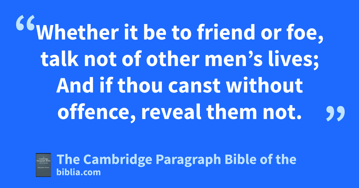 8 Whether it be * to friend or foe, talk not of other men’s lives;