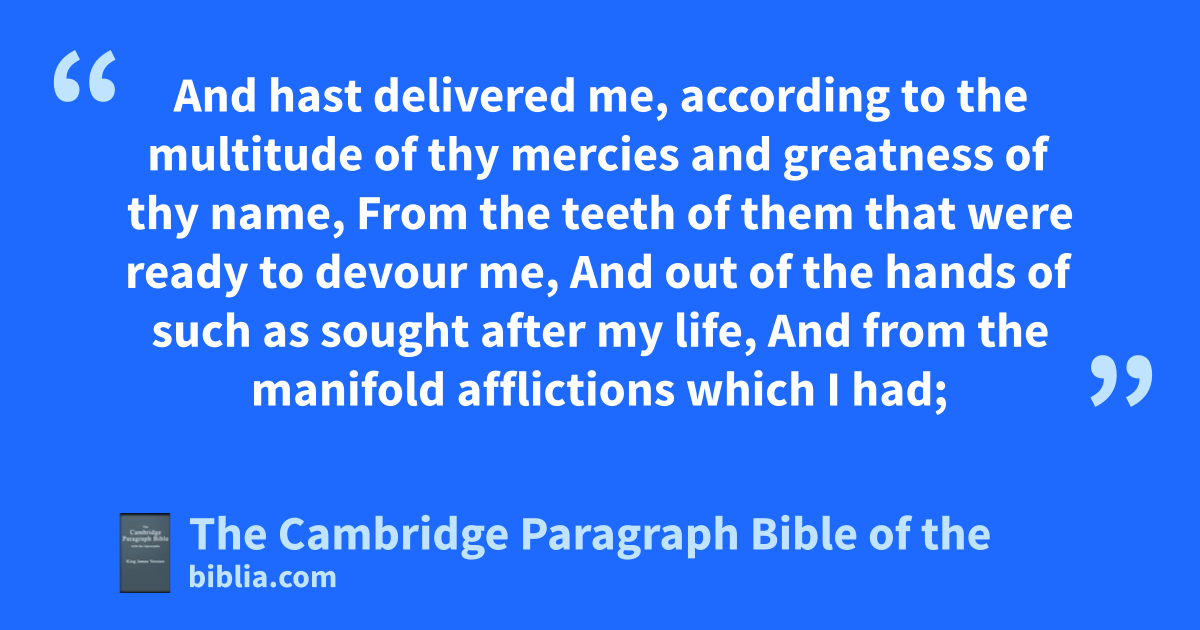 3 And hast delivered me, according to the multitude of thy mercies and greatness of thy name,