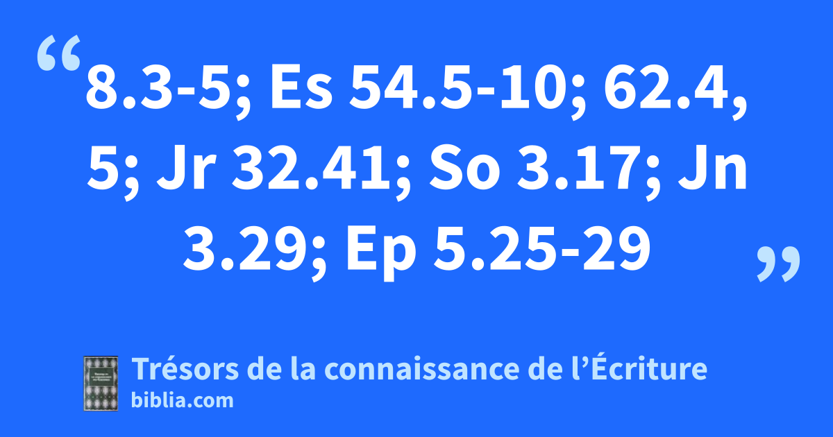 8.3-5; Es 54.5-10; 62.4, 5; Jr 32.41; So 3.17; Jn 3.29; Ep 5.25-29