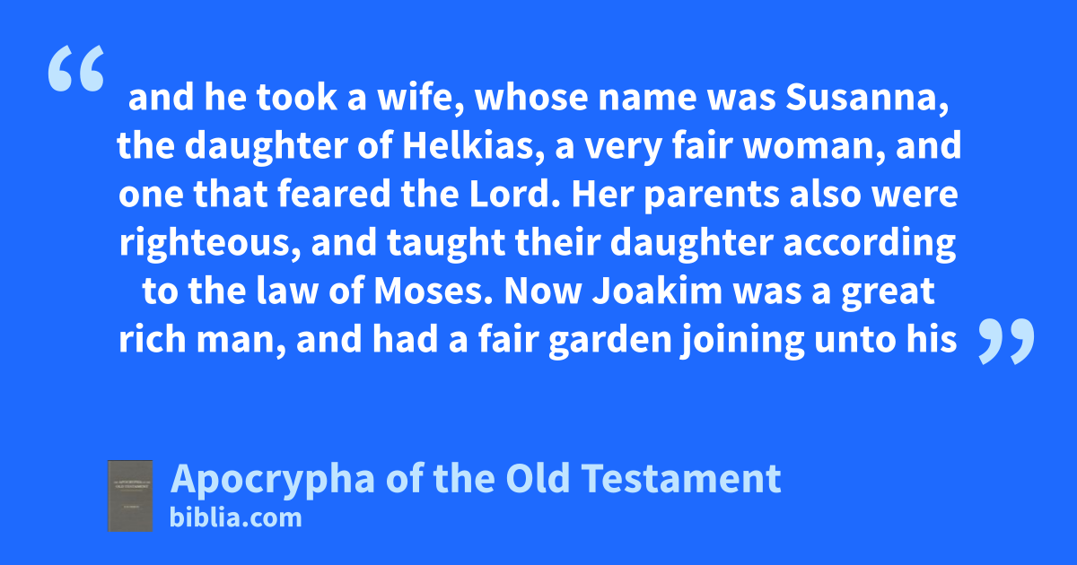2 and he took a wife, whose name was Susanna, the daughter of Helkias, a very fair woman, and one that feared the Lord. | (2) and he took a wife, whose name was Susanna, the daughter of Helkias, a very fair woman, and one that feared the Lord. |