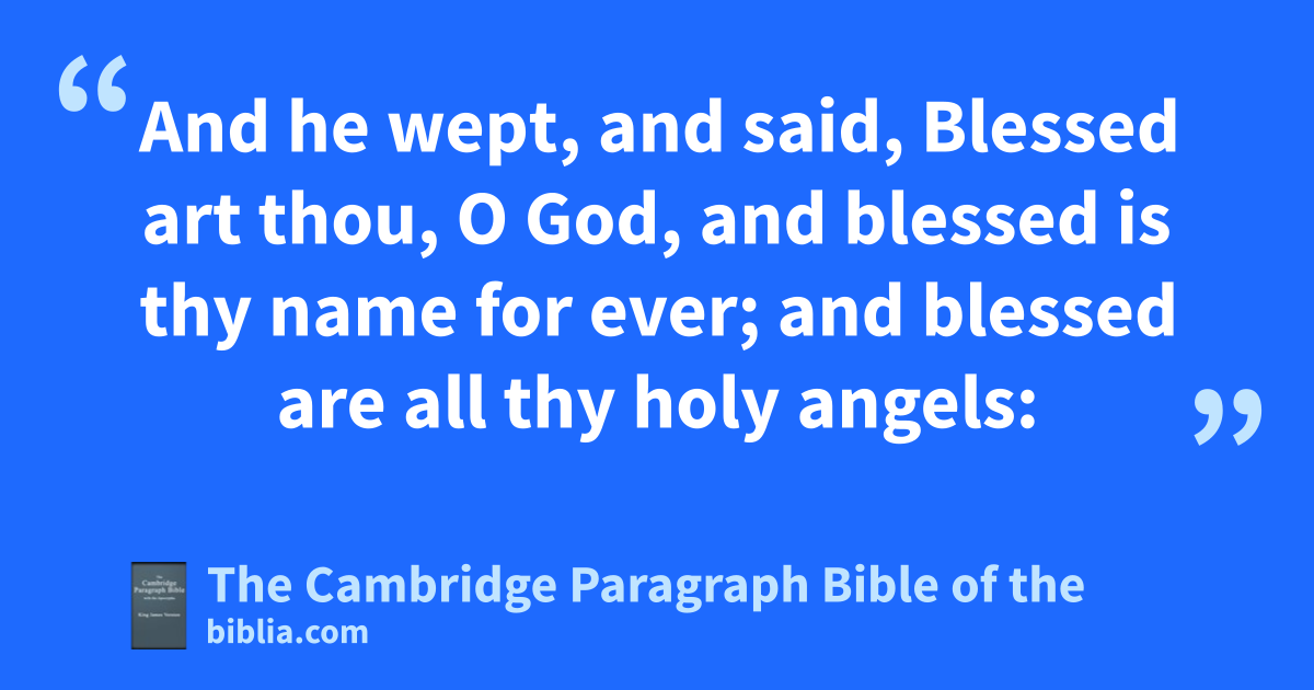 XI. After these things Tobias went his way, praising God that he had given him a prosperous journey, and blessed Raguel and Edna his wife, and went on his way till they drew near unto Nineve. 2 Then aRaphael said to Tobias, Thou knowest, brother, how thou didst leave thy father: 3 let us haste before thy wife, and prepare the house. 4 And take in thine hand bthe gall of the fish. So they went their way, and cthe dog went after them. 5 Now dAnna sat looking about towards the way for her son. 6 And when she espied him coming, she said to his father, Behold, thy son cometh, and the man that went with him. 7 Then said aRaphael, I know, Tobias, that thy father will open his eyes. 8 Therefore anoint thou his eyes with bthe gall, and being pricked therewith, he shall rub, and the whiteness shall fall away, and he shall see thee. 9 Then Anna ran forth, and efell upon the neck of her son, and said unto him, Seeing I have seen thee, my son, from henceforth I am content to die. And they wept both. 10 Tobit also went forth toward the door, and stumbled: but his son ran unto him, 11 and took hold of his father: and he strake of bthe gall on his father’s eyes, saying, fBe of good hope, my father. 12 And when his eyes began to smart, he rubbed them; 13 and the whiteness gpilled away from the corners of his eyes: and when he saw his son, ehe fell upon his neck. 14 And he wept, and said, hBlessed art thou, O God, and blessed is thy name for ever; and blessed are all thy iholy angels: 15 for kthou hast scourged, and hast taken pity on me: for behold, I see my son Tobias. And his son went in rejoicing, and told his father the great things that had happened to him in Media. 16 Then Tobit went out to meet his daughter in law at the gate of Nineve, rejoicing, and praising God: and they which saw him go marvelled, because he had received his sight. 17 But Tobit gave thanks before them, because God had mercy on him. And when he came near to Sara his daughter in law, he blessed her, saying, lThou art welcome, daughter: hGod be blessed, which hath brought thee unto us, and blessed be thy father and thy mother. And there was joy amongst all his brethren which were at Nineve. 18 And mAchiacharus, * and Nasbas his nbrother’s son, came: 19 and Tobias’ owedding was kept pseven days with great joy.