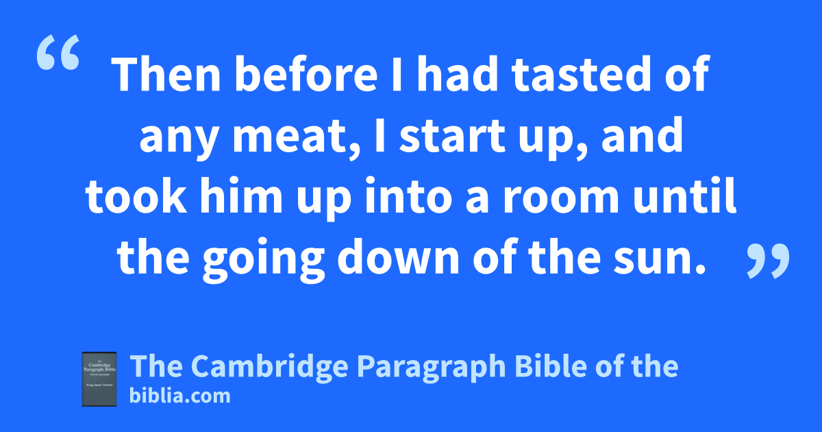 II. Now when I was come home again, and my wife Anna was restored unto me, with my son Tobias, in athe feast of Pentecost, which is athe holy feast of the seven weeks, there was a good dinner prepared me, in the which I sat down to eat. 2 And when I saw abundance of meat, I said to my son, Go and bring what poor man soever thou shalt find out of our brethren, who is mindful of the Lord; and lo, I tarry for thee. 3 But he came again, and said, Father, one of our nation is strangled, and is cast out in the marketplace. 4 Then before I had tasted of any meat, I start up, and took him up into a room until the going down of the sun. 5 Then I returned, and washed myself, and ate my meat in heaviness, 6 remembering that prophecy of Amos, as he said, bYour feasts shall be turned into mourning, and all your mirth into lamentation. 7 Therefore I wept: and after the going down of the sun I went and made a grave, and cburied him. 8 But my neighbours mocked me, and said, This man is not yet afraid to be put to death for this matter: dwho fled away; and yet lo, he burieth the dead again.