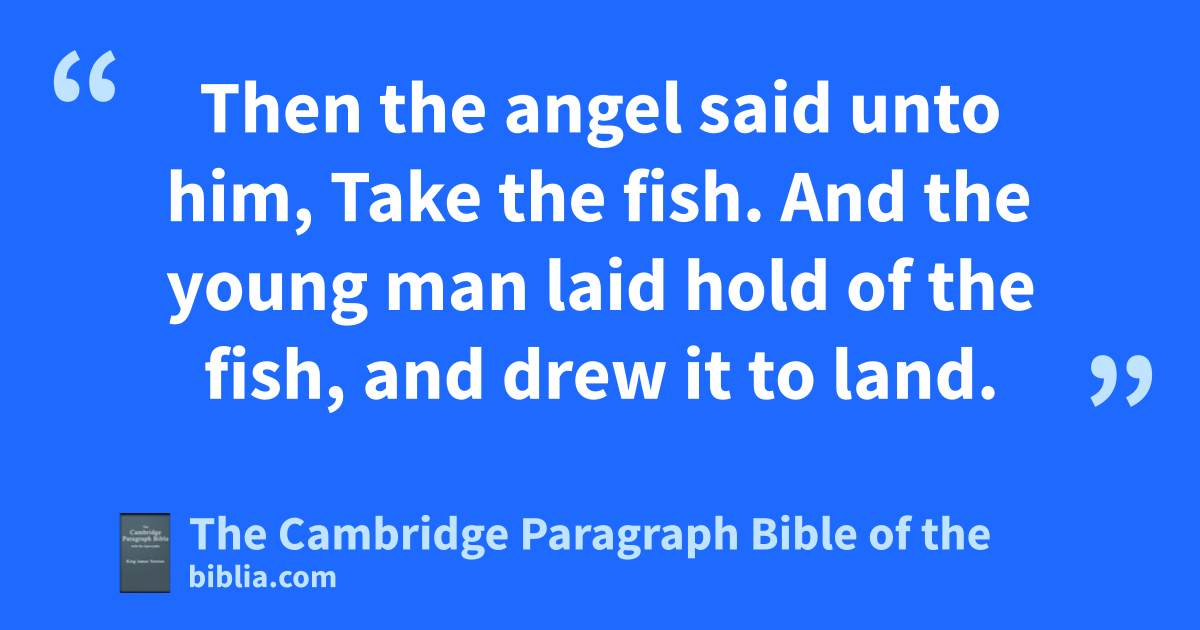 VI. And as they went on their journey, they came in the evening to the river aTigris, and they lodged there. 2 And when the young man went down to wash himself, a fish leaped out of the river, and would have devoured him. 3 Then the angel said unto him, Take the fish. And the young man laid hold of the fish, and * drew it to land. 4 To whom the angel said, Open the fish, and take the heart and the liver and the gall, and put them up safely. 5 So the young man did as the angel commanded him; and when they had roasted the fish, they did eat it: then they both went on their way, till they drew near to bEcbatane. 6 Then the young man said to the angel, Brother Azarias, to what use is the heart and the liver and the gall of the fish? 7 And he said unto him, Touching the heart and the liver, if a devil or an cevil spirit trouble any, we must make a smoke thereof before the man or the woman, and the party shall be no more vexed. 8 As for the gall, it is good ccto anoint a man that hath whiteness in his eyes, and he shall be healed.