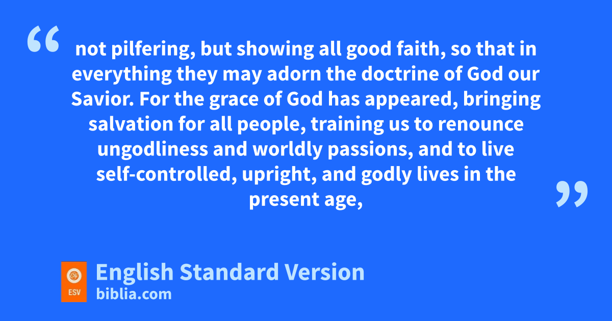 11 For hthe grace of God ihas appeared, bringing salvation jfor all people, 12 training us to renounce ungodliness and kworldly passions, and lto live self-controlled, upright, and godly lives in mthe present age, 13 nwaiting for our blessed ohope, the pappearing of the glory of our great qGod and Savior Jesus Christ, 14 rwho gave himself for us to sredeem us from all lawlessness and tto purify for himself ta people for his own possession who are uzealous for good works.