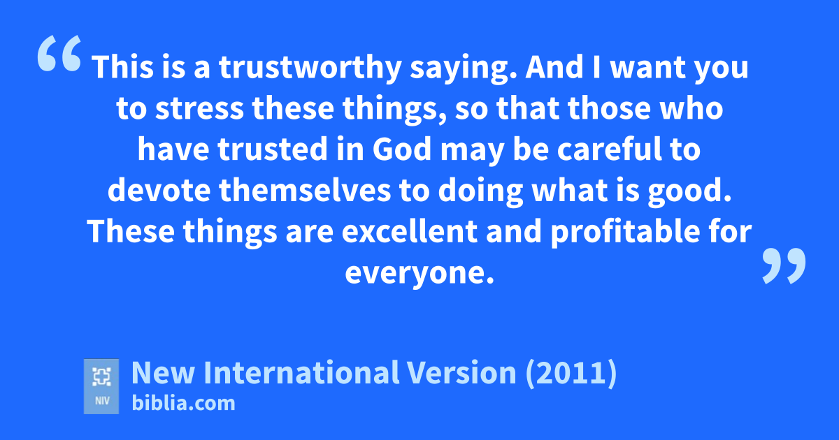 3 At one timez we too were foolish, disobedient, deceived and enslaved by all kinds of passions and pleasures. We lived in malice and envy, being hated and hating one another. 4 But when the kindnessa and love of God our Saviorb appeared,c 5 he saved us,d not because of righteous things we had done,e but because of his mercy.f He saved us through the washingg of rebirth and renewalh by the Holy Spirit, 6 whom he poured out on usi generously through Jesus Christ our Savior, 7 so that, having been justified by his grace,j we might become heirsk having the hopel of eternal life.m 8 This is a trustworthy saying.n And I want you to stress these things, so that those who have trusted in God may be careful to devote themselves to doing what is good.o These things are excellent and profitable for everyone.