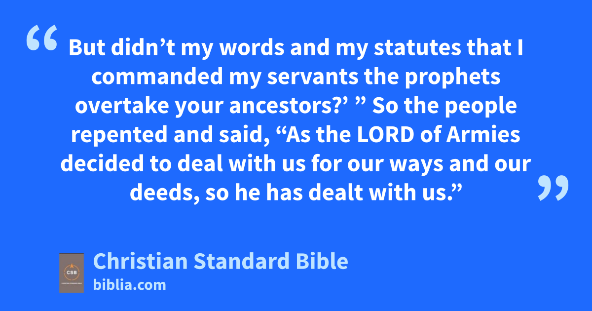 So the people repented and said, “As the Lord of Armies decided to deal with us for our ways and our deeds, so he has dealt with us.”h