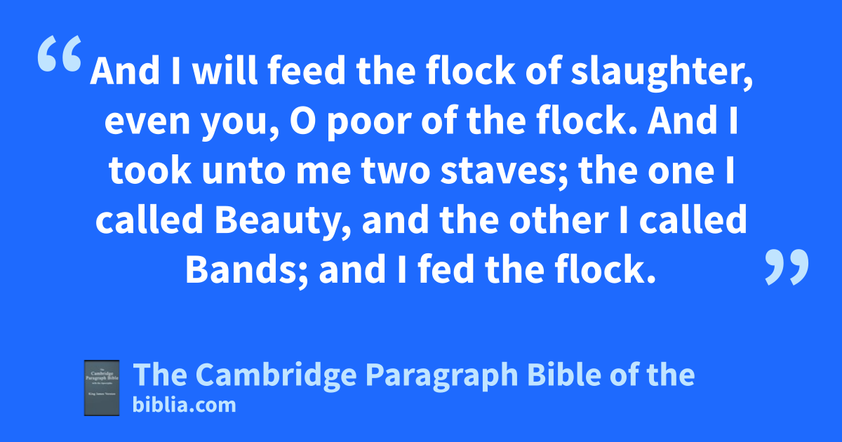 And I took unto me two staves; the one I called sBeauty, and the other I called * Bands; and ktI fed the flock. 8 Three shepherds also uI cut off in one month; and my soul * lothed them, and their soul also abhorred me. 9 Then said I, I will not feed you: vthat that dieth, let it die; and that that is to ube cut off, let it be ucut off; and let the rest weat every one the flesh * of another. 10 And I took my staff, even sBeauty, and cut it asunder, that I might break my covenant which I had made with all the people. 11 And it was broken in that day: and * so rthe poor of the flock xthat waited upon me knew that it was the word of the Lord. 12 And I said unto them, * If ye think good, ygive me my price; and if not, forbear. So zthey weighed for my price athirty pieces of silver. 13 And the Lord said unto me, Cast it unto bthe potter: ca dgoodly price that I was prised at of them. And I took athe thirty pieces of silver, and cast them to the potter in the house of the Lord. 14 Then I cut asunder mine other staff, even * Bands, that I might break the brotherhood between Judah and Israel.