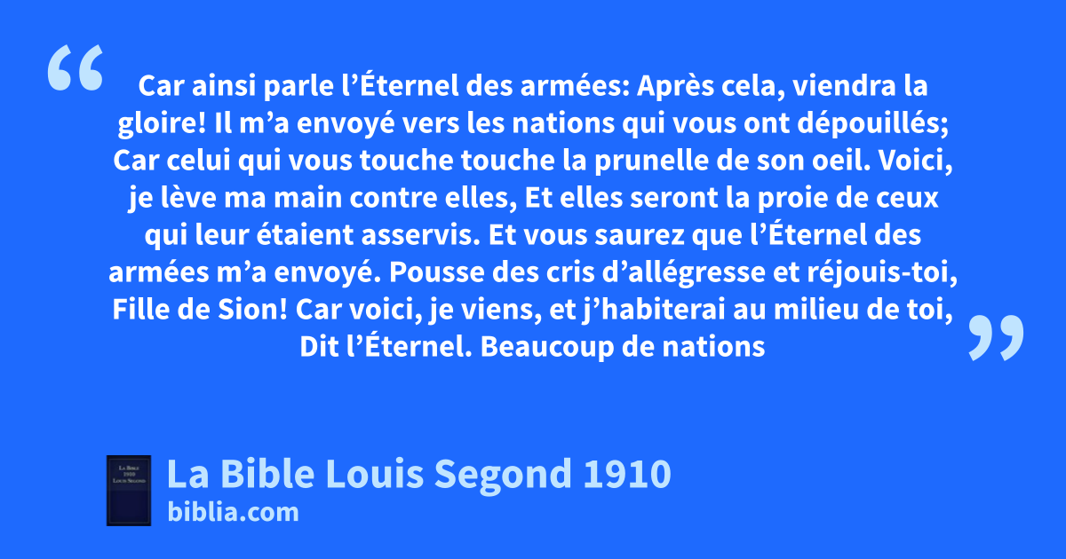 Car voici, je viens, et aj’habiterai au milieu de toi,