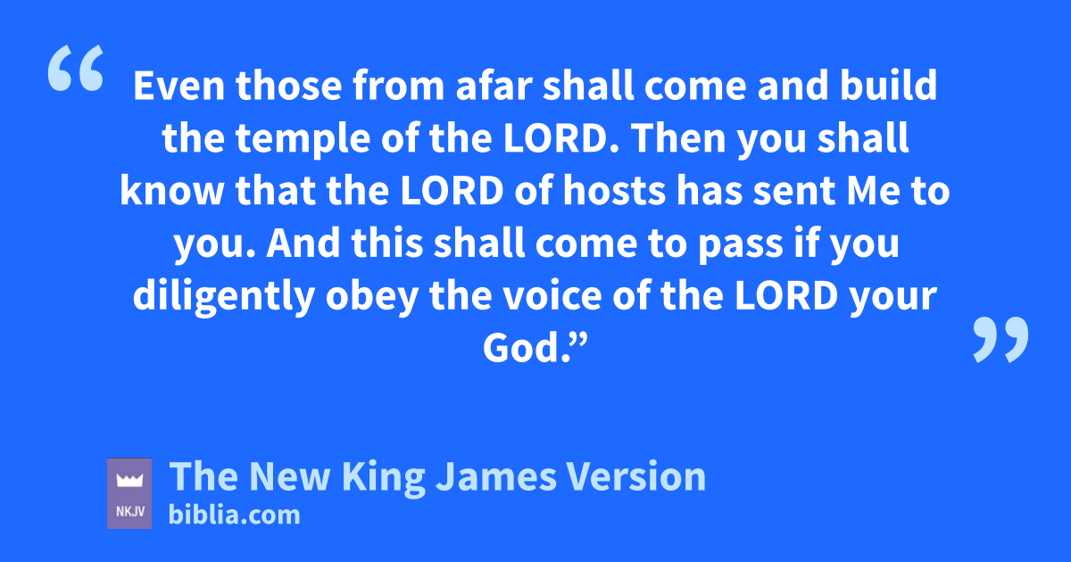 14 “Now the 5elaborate crown shall be pfor a memorial in the temple of the Lord 6for Helem, Tobijah, Jedaiah, and Hen the son of Zephaniah. 15 Even qthose from afar shall come and build the temple of the Lord. Then you shall know that the Lord of hosts has sent Me to you. And this shall come to pass if you diligently obey the voice of the Lord your God.”