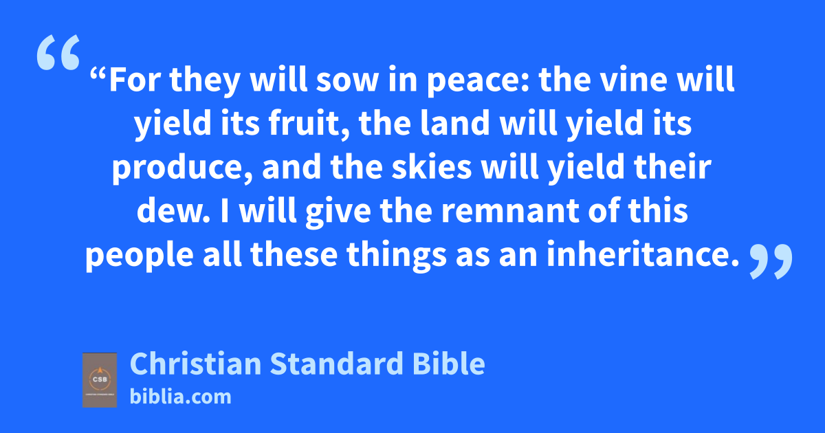 9 The Lord of Armies says this: “Let your hands be strong, you who now hear these words that the prophets spoke when the foundations were laid for the rebuilding of the temple, the house of the Lord of Armies. 10 For prior to those days neither people nor animals had wages. There was no safety from the enemy for anyone who came or went, for I turned everyone against his neighbor. 11 But now, I will not treat the remnant of this people as in the former days”—this is the declaration of the Lord of Armies. 12 “For they will sow in peace: the vine will yield its fruit, the land will yield its produce, and the skies will yield their dew. I will give the remnant of this people all these things as an inheritance.n 13 As you have been a curse among the nations,o house of Judah and house of Israel, so I will save you, and you will be a blessing.p Don’t be afraid; let your hands be strong.” 14 For the Lord of Armies says this: “As I resolved to treat you badly when your ancestors provoked me to anger, and I did not relent,” says the Lord of Armies, 15 “so I have resolved again in these days to do what is good to Jerusalem and the house of Judah.q Don’t be afraid. 16 These are the things you must do: Speak truth to one another; make true and sound decisions within your city gates. 17 Do not plot evilr in your hearts against your neighbor,s and do not love perjury,t for I hate all this”—this is the Lord’s declaration.